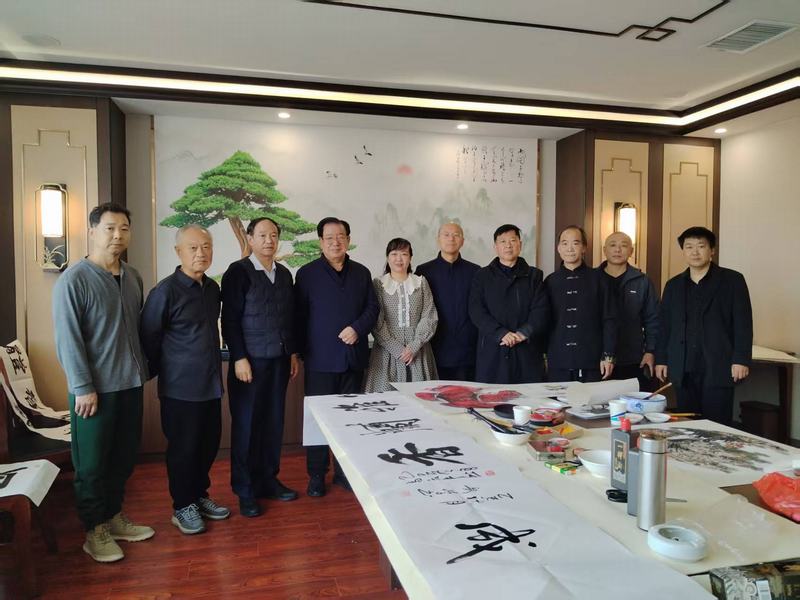 2025年11月4日,邢台市石家庄商会党支部召集人林新学,邀请书画名家郭建禄、马志平、马爱兴老师,走进河北同成科技股份有限公司,举办了一场“翰墨飘香,企商联谊”为主题的温暖企业行书画交流活动。