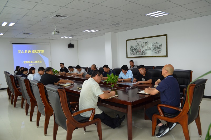 2021年9月10日,公司营销部在会议室进行了营销员工动员大会,力争在第四季度充分调动营销员工的工作积极性,推动公司各项业务加快发展。动员大会由董事长宋彦波主持,副总经理刘万会、姚书平、裴英敏、总经理助理王玉、市场部主任唐明军以及员工代表都进行了表态发言。