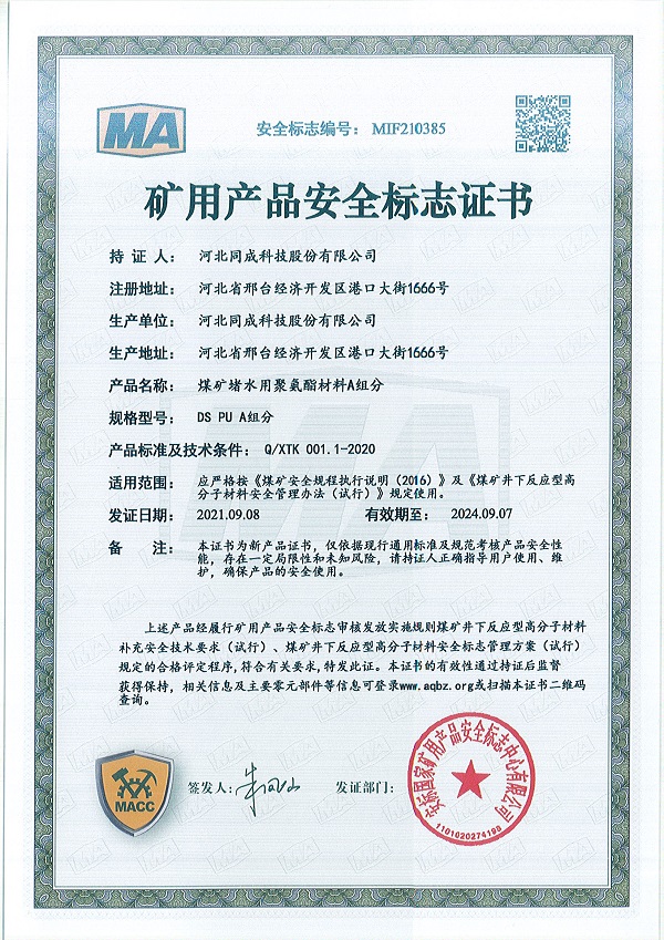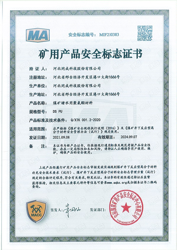 点击数:3683 来源: 注浆材料|矿用注浆堵水|注浆加固材料|注浆堵水|河北同成科技股份有限公司